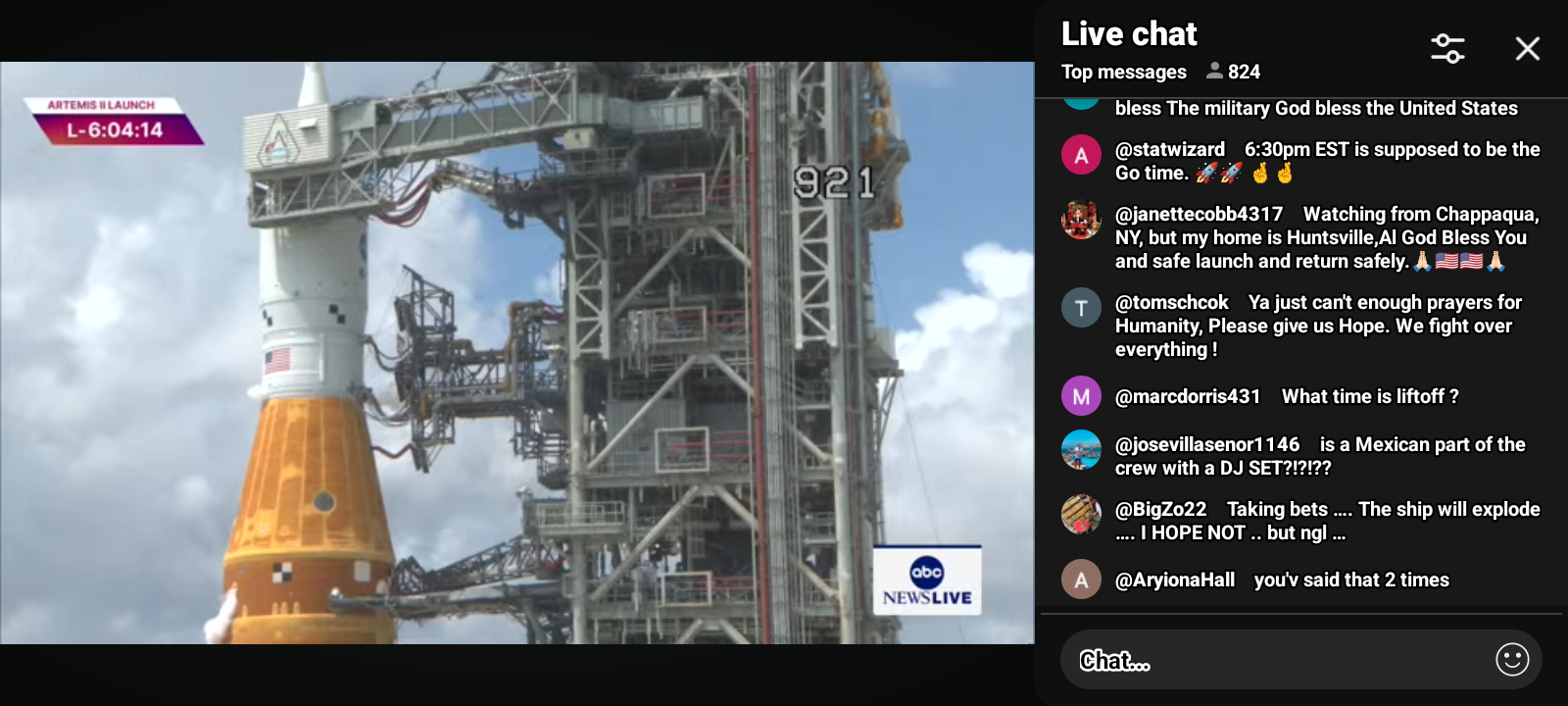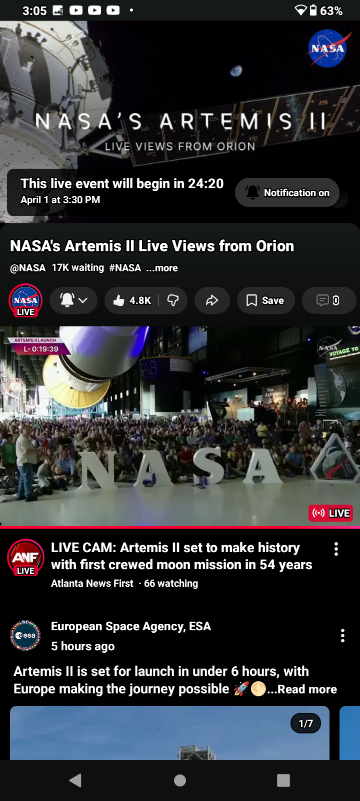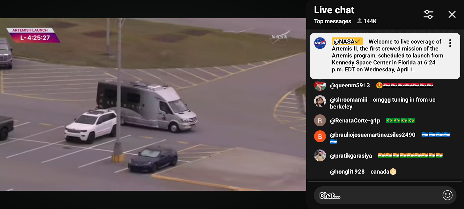 50https://www.youtube.com/live/8DHG51vpgkU?si=IJMEzIzCxpl874cT Artemis II Moon Rocket Launch LIVE: NASA’s Artemis II Live Views from Kennedy Space Center, FL | CNBC TV18 LIVE feed from Kennedy Space Center in Florida will provide continuous views of the Artemis II Moon rocket beginning on Thursday, March 19, with rollout from the Vehicle Assembly Building to Launch Pad 39B. NASA Sends Astronauts around the Moon for the first time in 50 years. Live view of the Artemis II Moon rocket. While the Artemis II launch window opens as early as Wednesday, April 1, the mission management team will assess flight readiness across the spacecraft, launch infrastructure, and the crew and operations teams before selecting a launch date. @nbcnews @dhs-gov @blackgirlscode