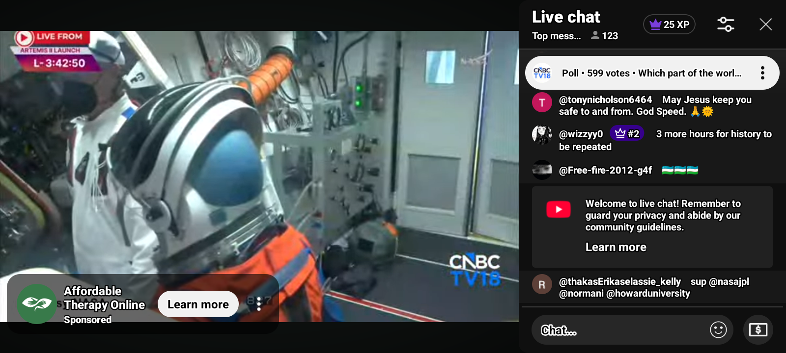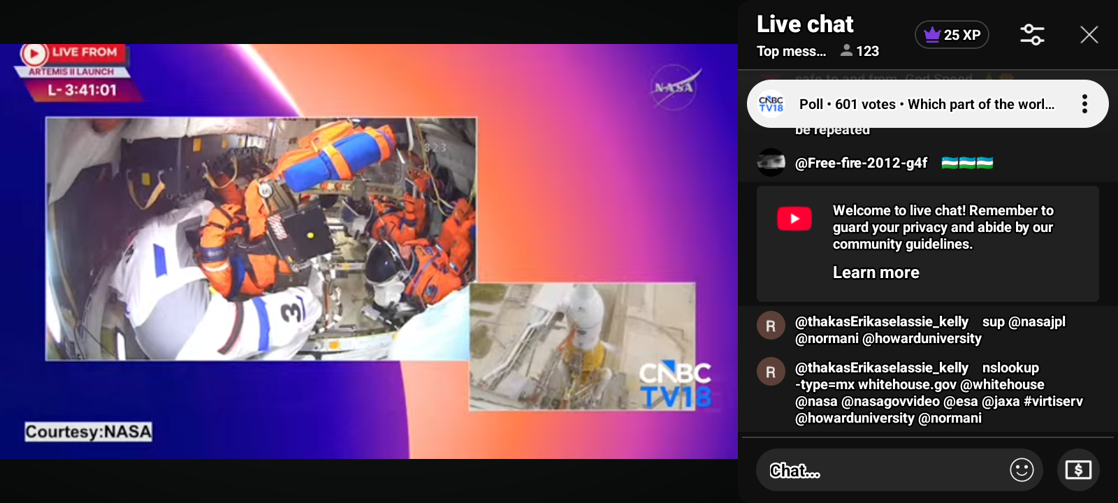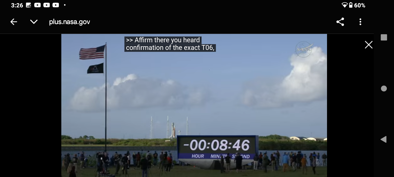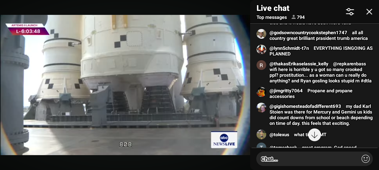 50https://www.youtube.com/live/8DHG51vpgkU?si=IJMEzIzCxpl874cT Artemis II Moon Rocket Launch LIVE: NASA’s Artemis II Live Views from Kennedy Space Center, FL | CNBC TV18 LIVE feed from Kennedy Space Center in Florida will provide continuous views of the Artemis II Moon rocket beginning on Thursday, March 19, with rollout from the Vehicle Assembly Building to Launch Pad 39B. NASA Sends Astronauts around the Moon for the first time in 50 years. Live view of the Artemis II Moon rocket. While the Artemis II launch window opens as early as Wednesday, April 1, the mission management team will assess flight readiness across the spacecraft, launch infrastructure, and the crew and operations teams before selecting a launch date. @nbcnews @dhs-gov @blackgirlscode